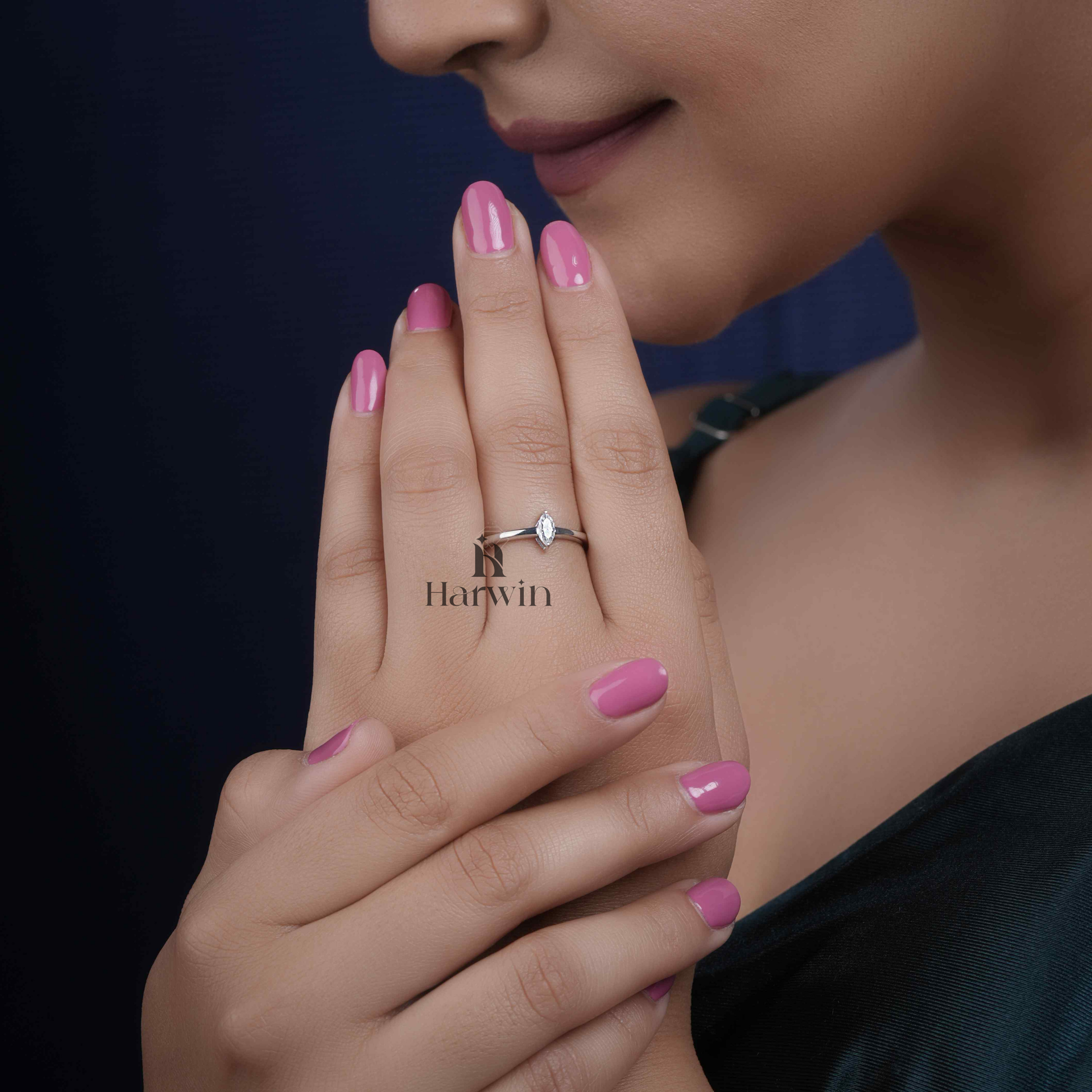 Minimal 2-Prongs Marquise Moissanite Solitaire Ring 0.25CT Diamond Engagement Ring, Single Oval Cut Diamond Engagement Ring For Women.