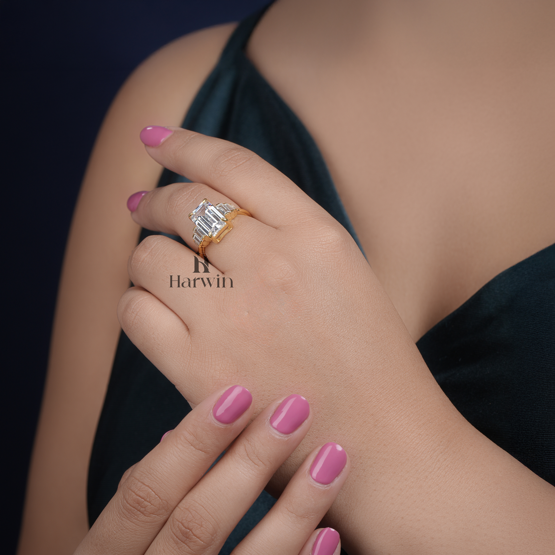 Baguette Moissanite Engagement Ring 14k Solid Gold Baguette Moissanite Diamond Ring 5 Stone Art Deco Baguette Diamond Ring.